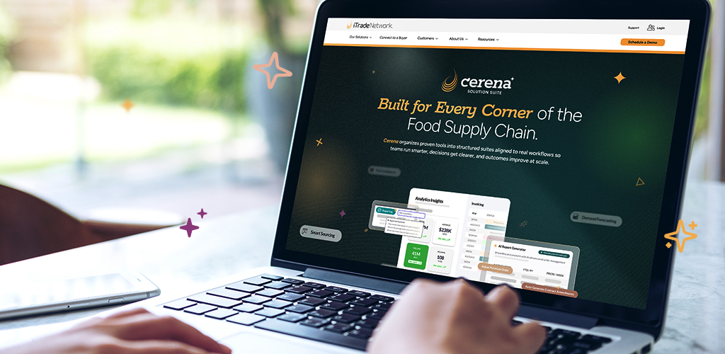 Cerena Solution Suites are more than just a framework, they’re a smarter way to get more from the tools you trust. Rooted in over 25 years of connected intelligence, each suite is purpose-built for the food and beverage supply chain. By bringing together proven iTradeNetwork products in ways that match how your business operates, Cerena helps you unlock more value, clarity, and control every day and at every step.